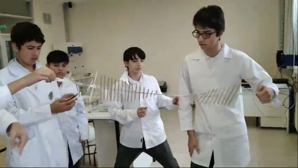 Utilizando un resorte y una máquina de ondas, los estudiantes generaron y observaron ondas transversales y longitudinales. Este ejercicio les ayudó a identificar las diferencias entre ambos tipos de ondas y a comprender cómo se comportan.