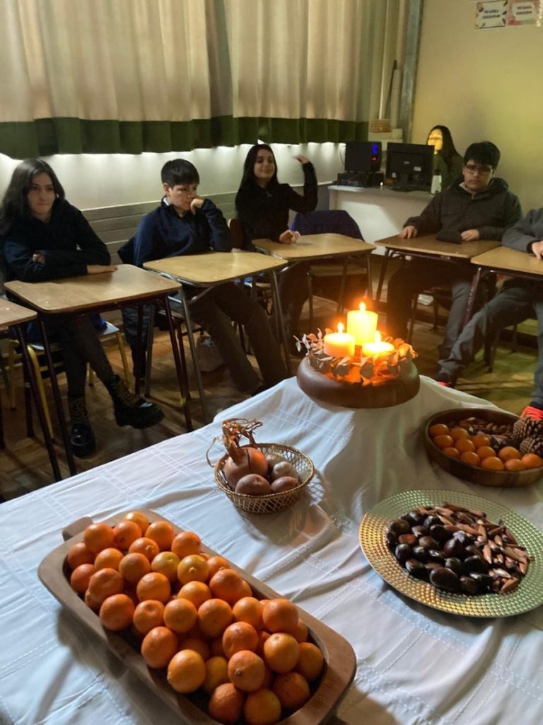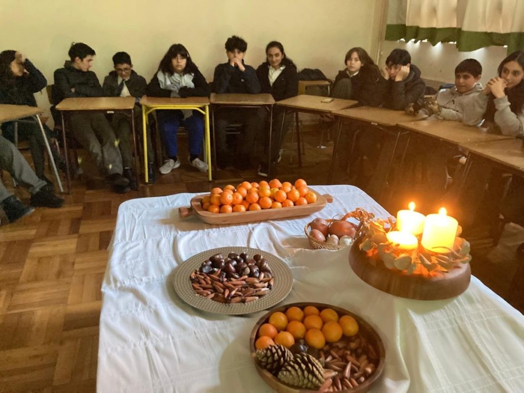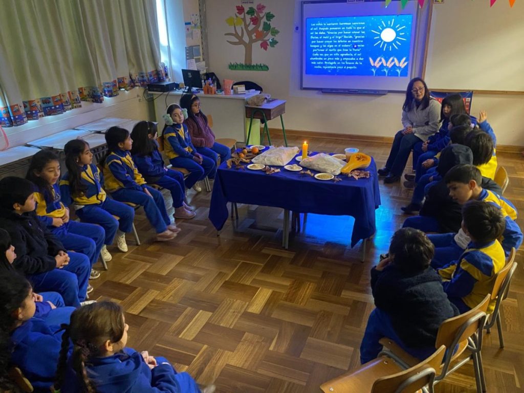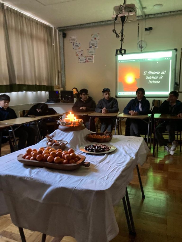 Hoy se celebró en nuestro Colegio el Solsticio de Invierno, invitando a los estudiantes de Medio Mayor a 4° Medio a reflexionar sobre este evento astronómico que nos lleva a la comprensión de que es un periodo del año para recargar y renovar energías. El solsticio de invierno lleva consigo la esperanza de días más largos y luminosos, simboliza la conexión del ser humano con los procesos naturales, y es una invitación a vivir el mismo ciclo de la naturaleza, donde los cuatro elementos (fuego, agua, aire y tierra) actúan para generar un proceso de transformación interior, esto se relaciona también con la cosmovisión de la sabiduría antigua, recogiendo las tradiciones de los pueblos y culturas originarias.