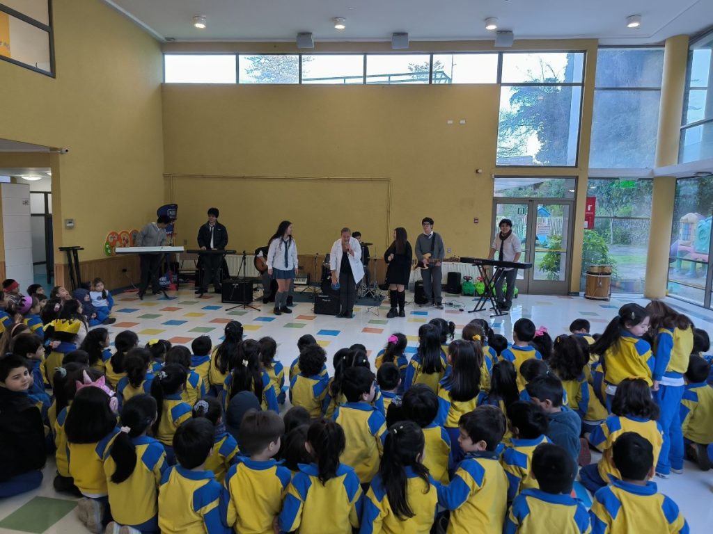 También contamos con la hermosa presentación musical para nuestros niños y niñas a cargo de la Profesora Verónica Cofré y un grupo de alumnos de enseñanza media de nuestro colegio quienes demostraron su talento en las canciones que presentaron.