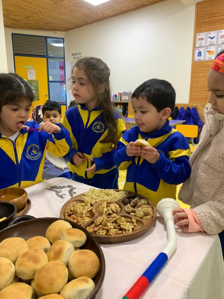 Uno de los momentos más esperados de la celebración fue la degustación de alimentos tradicionales mapuches. Los niños tuvieron la oportunidad de probar diversas preparaciones que son parte integral de la gastronomía de esta cultura.