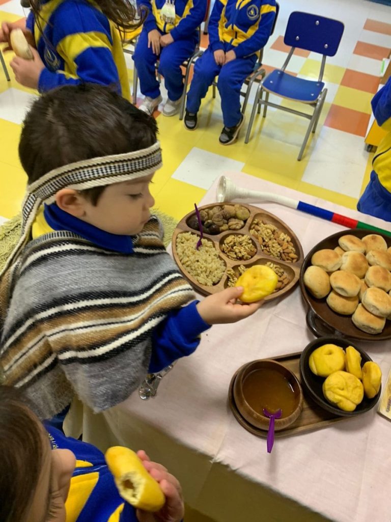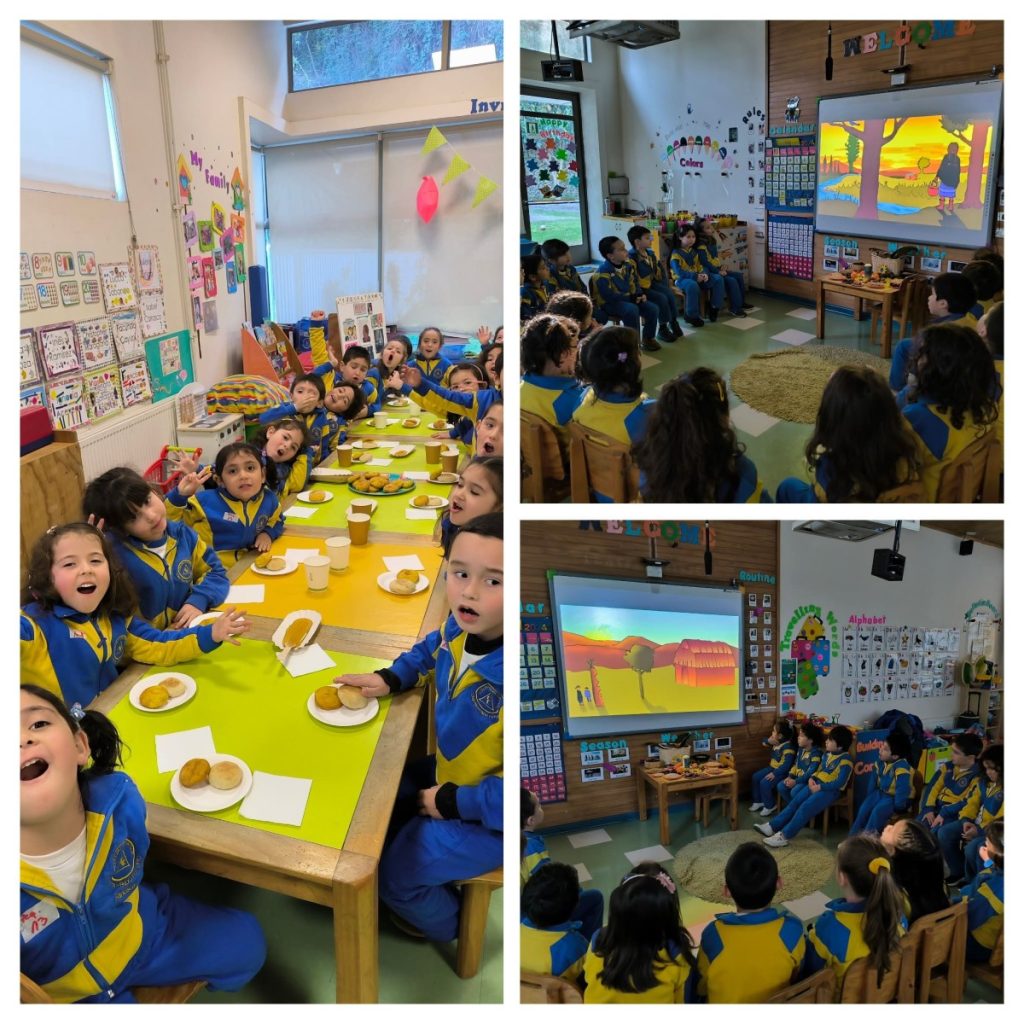 Para fomentar la creatividad y la conexión con la temática, los niños colorearon dibujos de parejas mapuches y dibujaron los alimentos característicos de la celebración. Estas actividades no sólo promovieron el aprendizaje artístico, sino que también ayudaron a los pequeños a internalizar los conocimientos de una manera divertida y participativa.