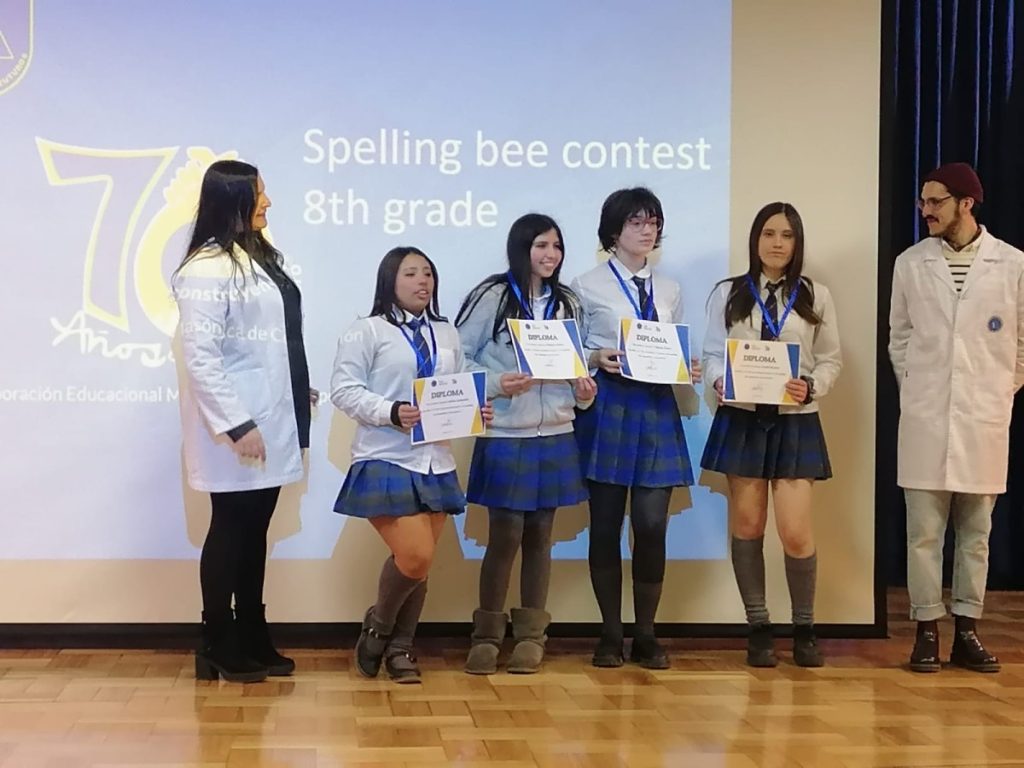 Both 7th and 8th graders were involved in a fierce yet friendly competition. Their hard work and preparation were evident as they confidently spelled their way through increasingly challenging words. In the end, the winner for the 7th grade category was 7th grade A team:Sebastián Huepe,Fernanda Frindt,Juand Pablo Astete and Addy Monsalves.They impressed everyone with their spelling prowess.