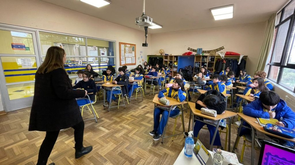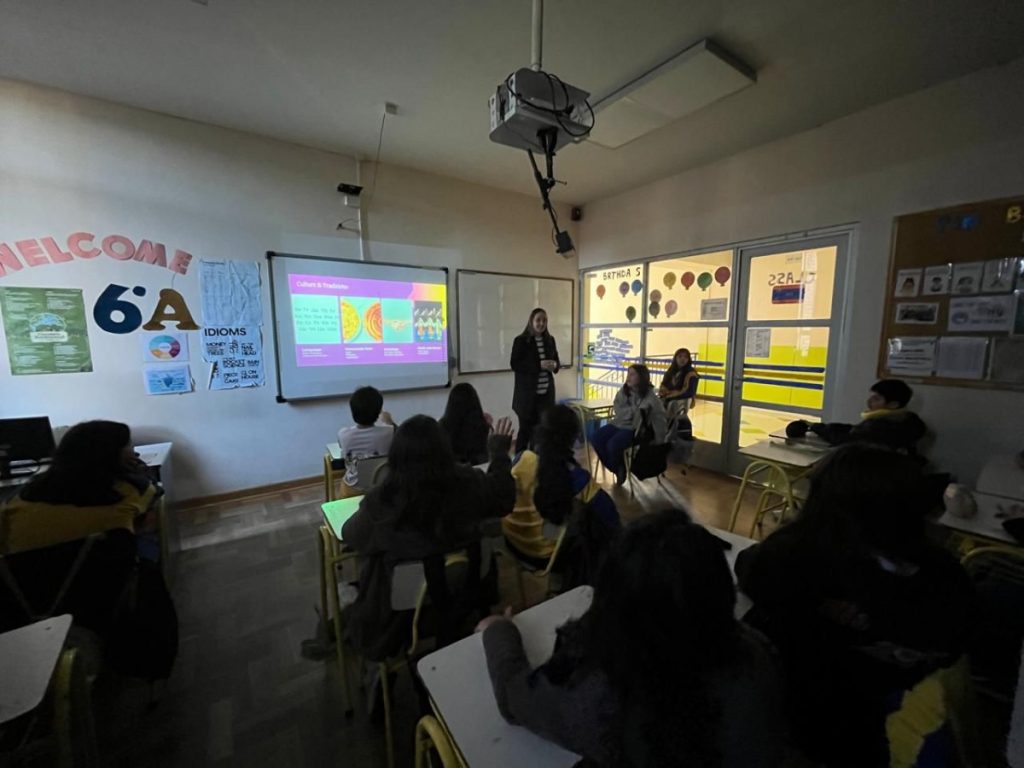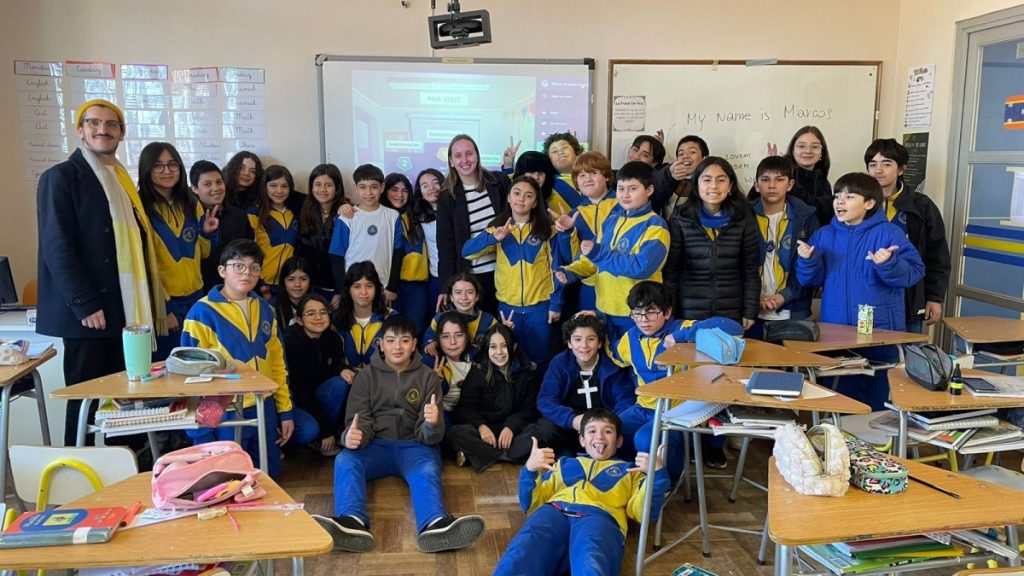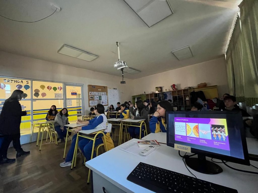 Last week, on August 7th, our 6th «A» and «B» classes had a fantastic time welcoming Mia Kreca from Bosnia and Herzegovina, who visited us once again. Thanks to our English Immersion program, and with a big thank you to Ms. Camila Moisan and Mr. Marcos Riveros for organising, our students enjoyed a fun and interactive cultural discussion.