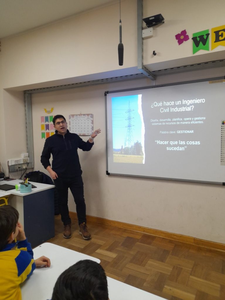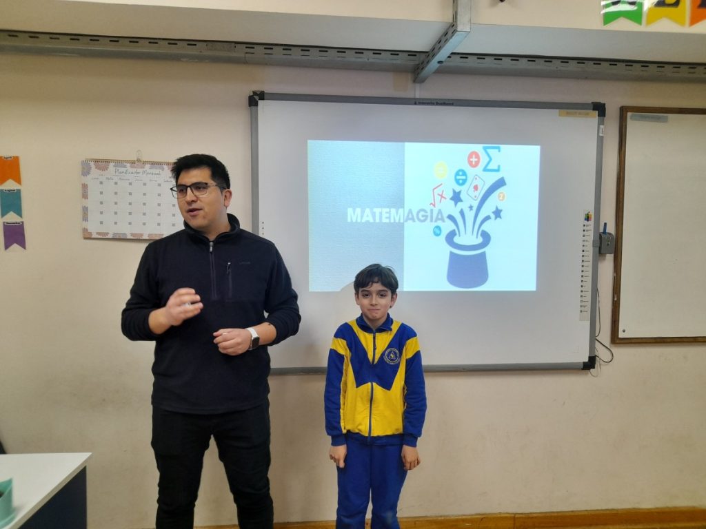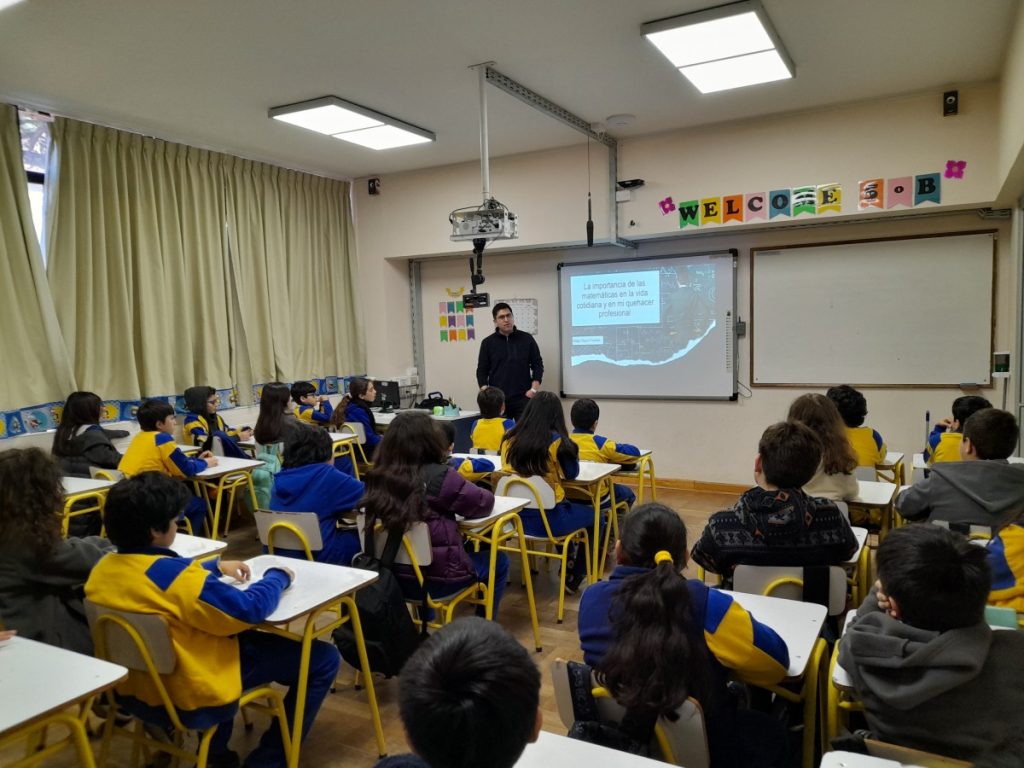 En agosto del presente año, el apoderado del 5°B, Sr. Diego Olguín Fuentes, padre de Maryang Olguín Del Castillo, nos visitó para compartir sus conocimientos matemáticos desde su profesión como Ingeniero .