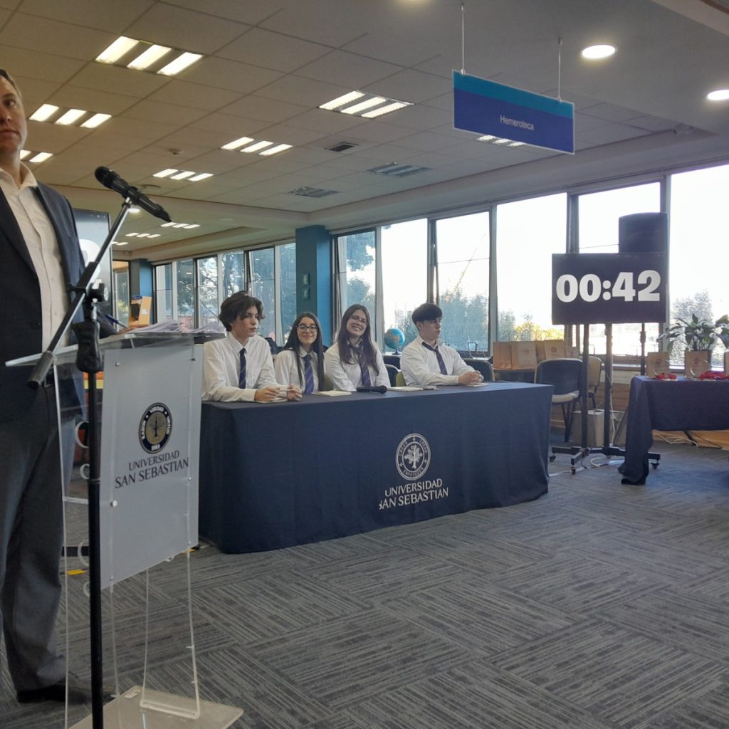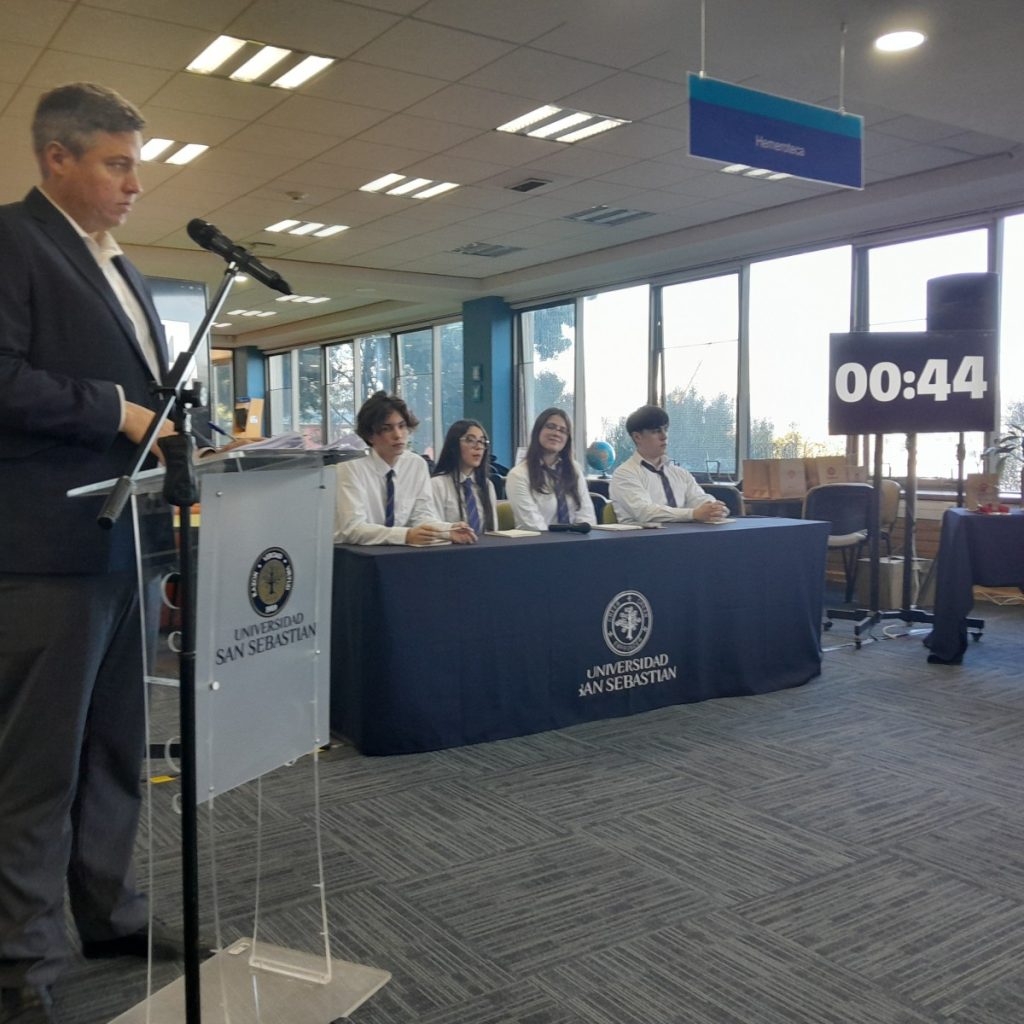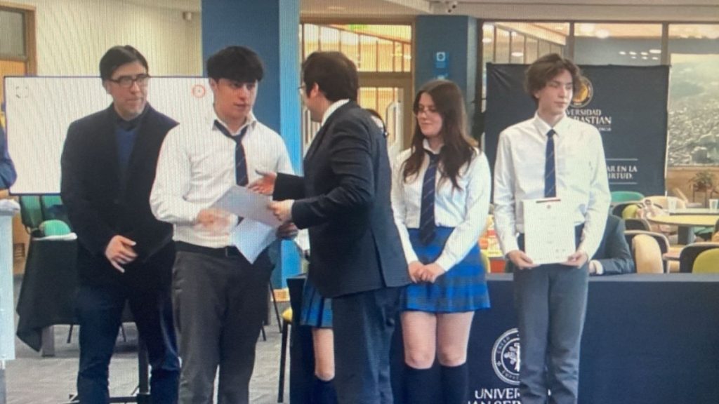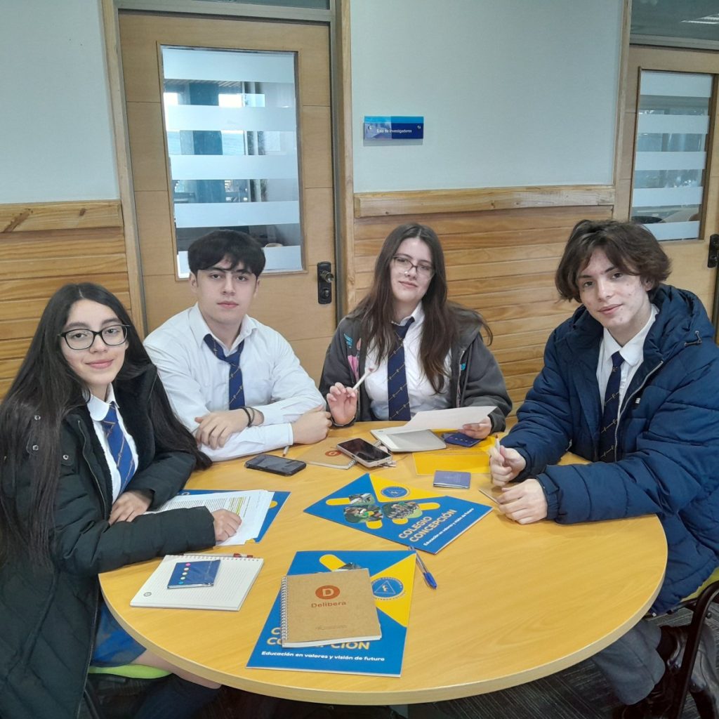 Por segunda vez consecutiva el equipo DELIBERA de nuestro colegio tuvo una excelente participación en la final regional Bío Bío, realizada en 09 de Agosto pasado. Las /los alumnos/as Gracia Queirolo, Rocío Plasencio, Wilfred Cox y Rodrigo Durán, guíados por el profesor Luis González, expusieron y defendieron con gran prestancia y elocuencia su proyecto de ley sostenido en una «educación integral de competencias socioafectivas para la educación chilena».
