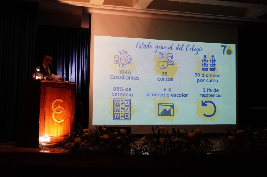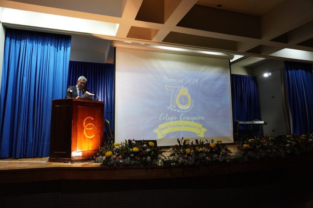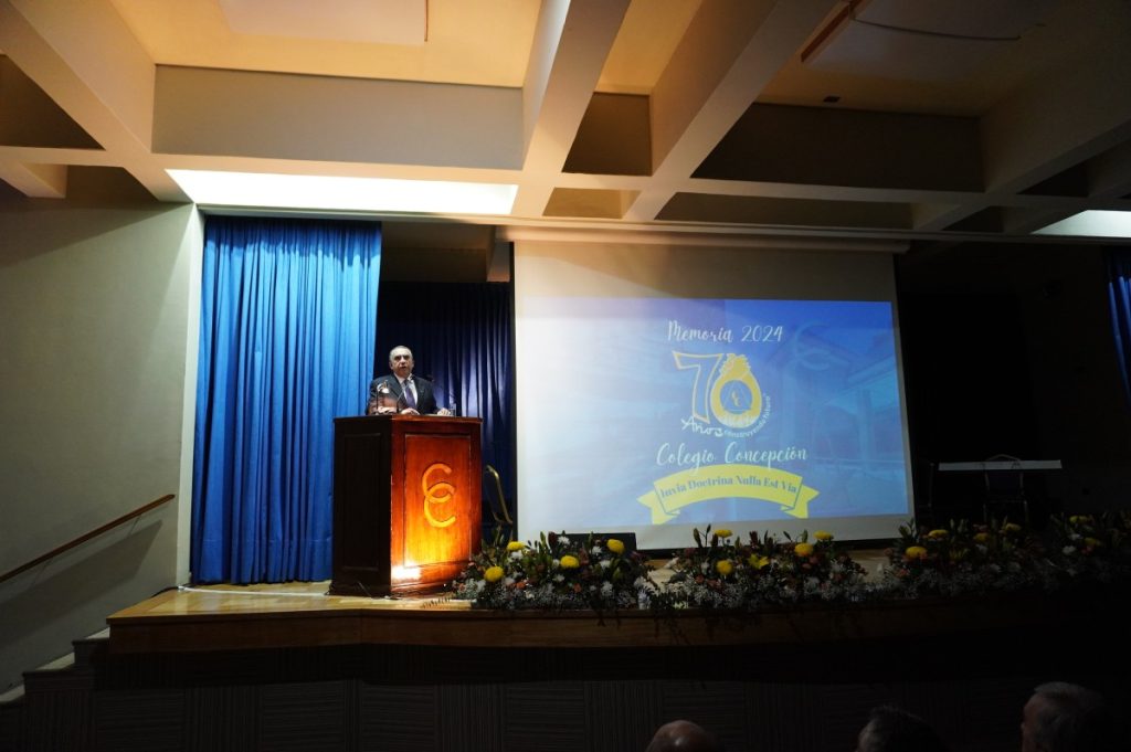 En la oportunidad, el rector de nuestro colegio: Sr. Víctor Viveros Vidal, se dirigió a los presentes para destacar los hitos más relevantes del último año transcurrido, así como las proyecciones y desafíos futuros. También tuvo una alocución, el Presidente de la Corporación Educacional Masónica de Concepción, Sr. Alejandro Navarro Torres, en sus palabras destacó la valoración de la trayectoria recorrida, como la dedicación de las personas que la han hecho posible durante estos setenta años.