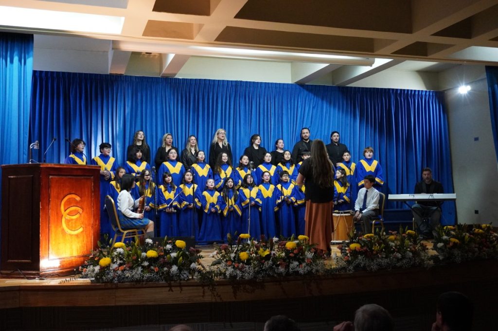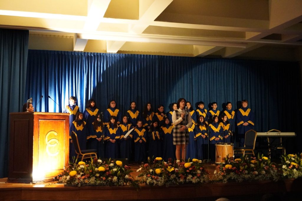 EL acto fue amenizado por dos números musicales a cargo del coro de nuestro colegio, dirigido por la profesora Verónica Cofré, integrado por alumnos y ex-alumnos de distintas generaciones; además del violín de María Victoria Carrasco Arredondo, de 8°B; la percusión de Ricardo Rojas Romero, de 1° medio A y el canto de Gabriela Quintral Sepúlveda, de 8°C.