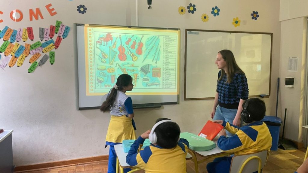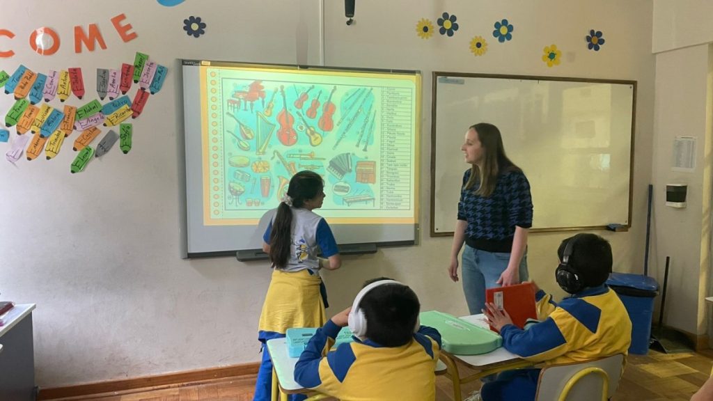 On Tuesday, November 14th, Colegio Concepción had the pleasure of hosting again Mia Kreca from Bosnia and Herzegovina for a cultural experience with our 4th-grade A and B students during their Music class. This visit was part of our ongoing efforts to enrich students’ learning through cultural exploration, using music and storytelling to bring English to life.