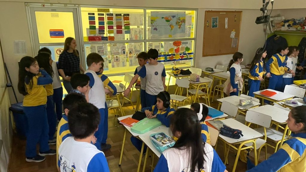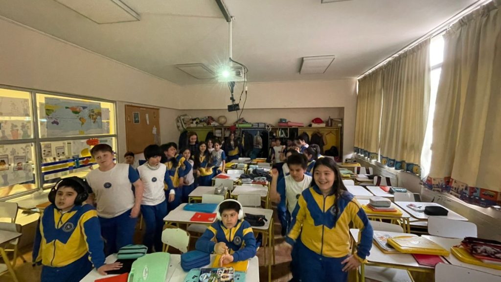 Mia shared a traditional Bosnian folk song with the students, guiding them through its melody and meaning. Our 4th graders enthusiastically participated, comparing the Bosnian rhythms to their own Chilean folk traditions. This engaging activity allowed them to learn about another culture while practising English in a fun, hands-on way.