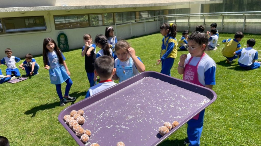 The students learned how to make Cocadas, a delicious treat from Mexico. The recipe was simple yet fun—students used manjar (a popular Chilean caramel spread) and crumbled biscuits to create these sweet delights. We keep the name «Cocadas» in its original form, honouring its cultural origin, just as we do with «manjar.»