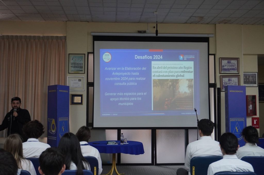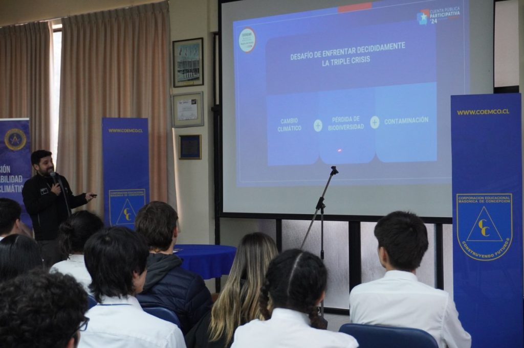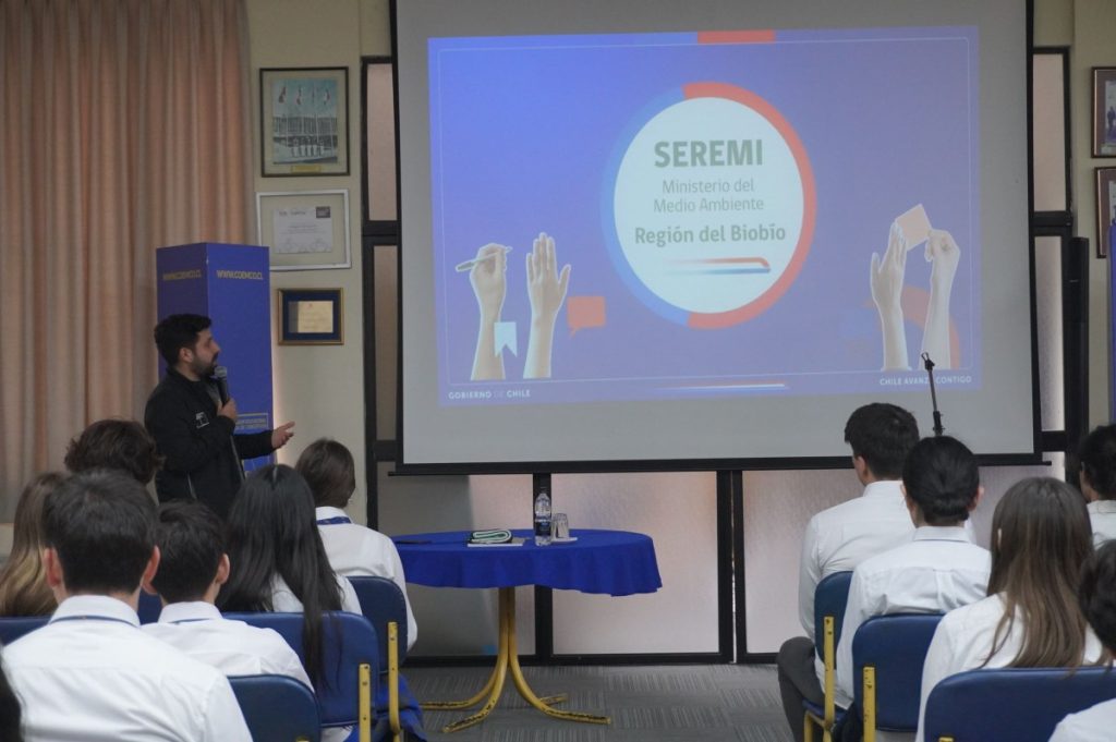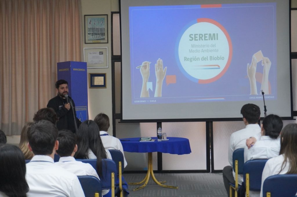 Los estudiantes participaron activamente, haciendo preguntas centradas en la crisis climática y la responsabilidad ambiental de las empresas. El Seremi explicó cómo el ministerio trabaja para asegurar que las compañías cumplan con normativas medioambientales estrictas, e insistió en la importancia de que el sector privado asuma un rol responsable en la reducción de emisiones y la gestión adecuada de los recursos naturales.