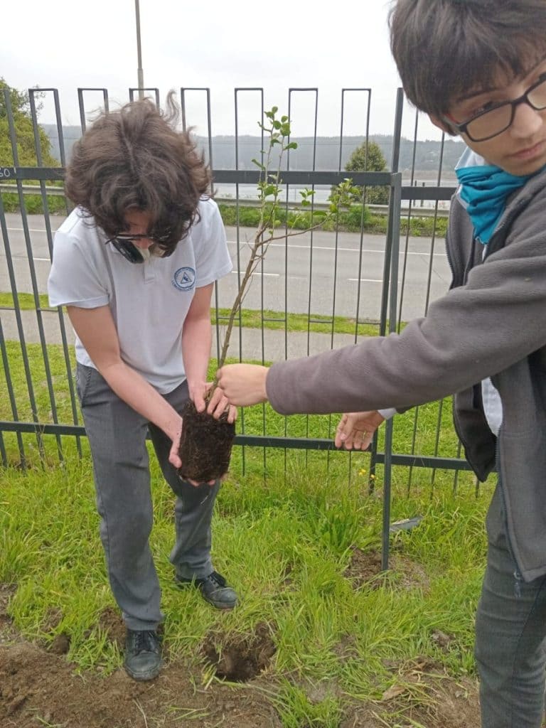 Por otro lado, el Comité representado por la Ecobrigada, participó en el concurso nacional «Explorando mi entorno», organizado por el Centro UC, donde los estudiantes tuvieron la oportunidad de presentar proyectos y propuestas innovadoras para la conservación de la naturaleza, fomentando el pensamiento crítico y la creatividad. Igualmente, este taller participó activamente en un destacado proyecto de reforestación impulsado por la Gran Logia de Chile, en el cual se contribuyó a la recuperación de áreas verdes y fomentar una cultura de respeto y cuidado por el medio ambiente. La participación del Colegio en este proyecto reafirma su compromiso con la sostenibilidad y la formación de ciudadanos conscientes del impacto positivo que pueden generar en su entorno.