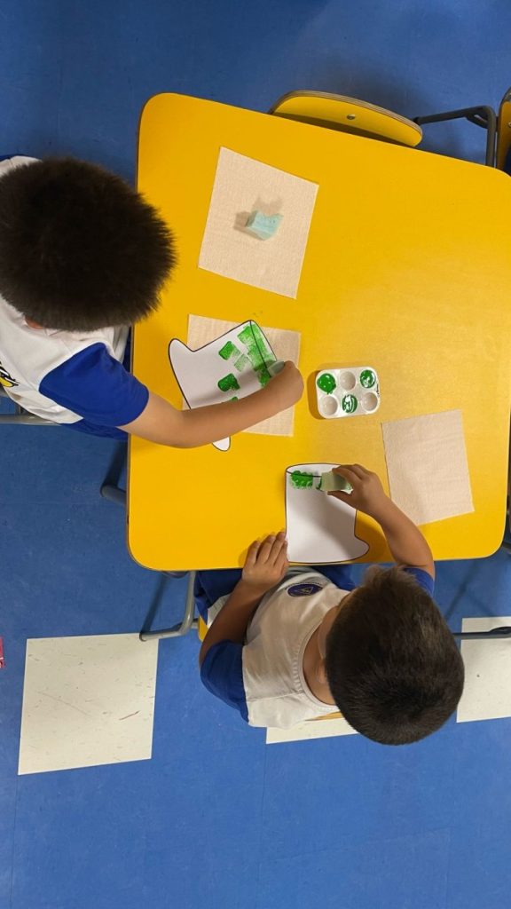 To bring this cultural exchange to life, students crafted their own leprechaun hats and beards, using various creative techniques such as solid paint, crayons, colored pencils, sponge stamping, and paper collage. Each class experimented with different materials, allowing them to personalise their work while engaging in a hands-on learning experience.