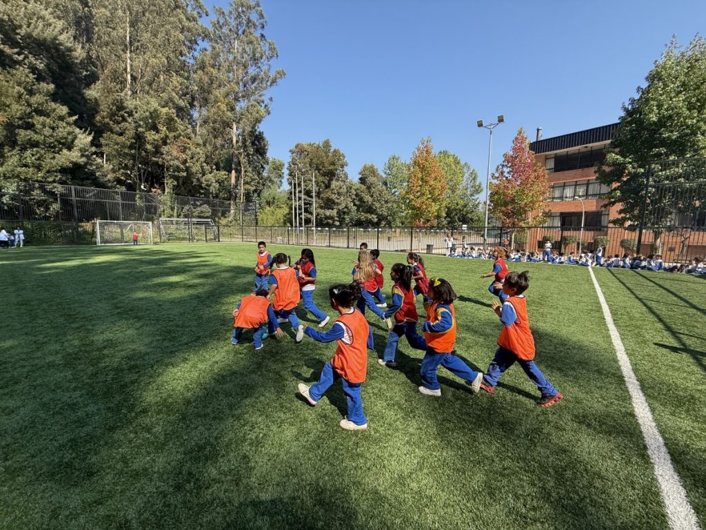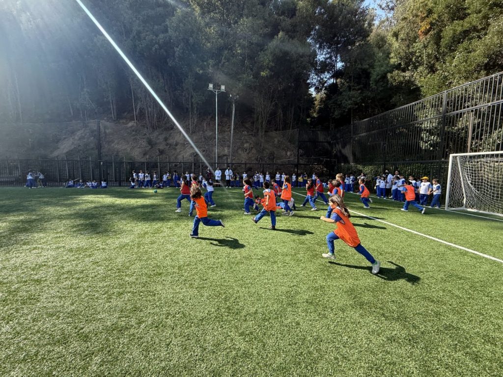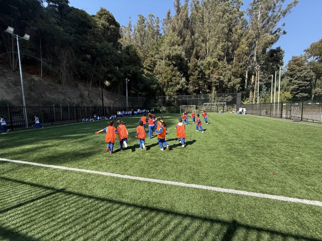 En el inicio de esta celebración, los estudiantes de 1º y 2º básico vivieron una entretenida jornada deportiva, donde disfrutaron de partidos de mini fútbol, promoviendo el trabajo en equipo, el respeto, la sana convivencia y el ejercicio físico.