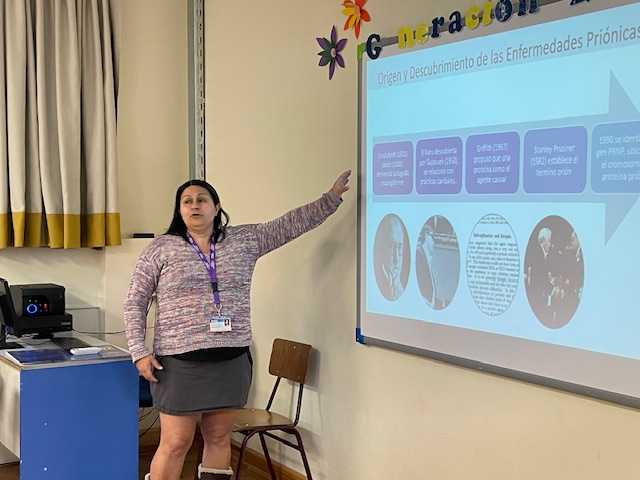 El Miércoles 23 de Abril estudiantes de Tercero y Cuarto medio asistieron a una enriquecedora charla científica sobre priones, organizada por la profesora Gisela Corday L jefe del departamento de Ciencias y dictada por la Doctora Carola Muñoz M, docente de la Universidad de Concepción.
