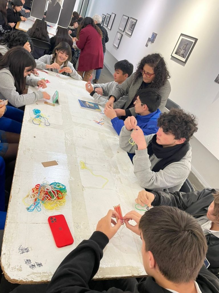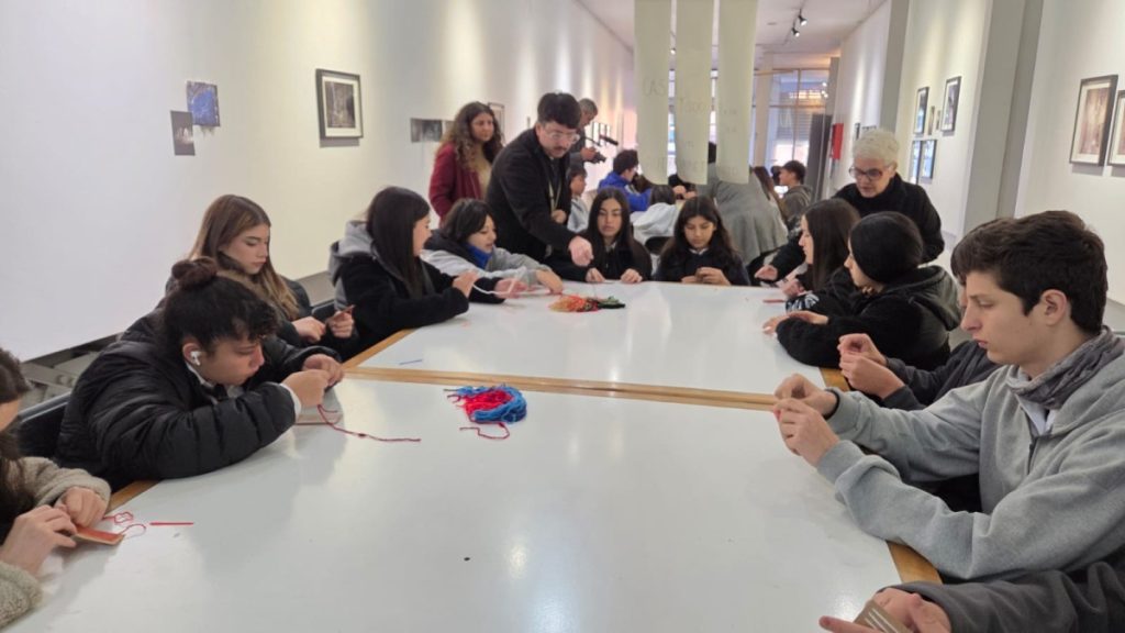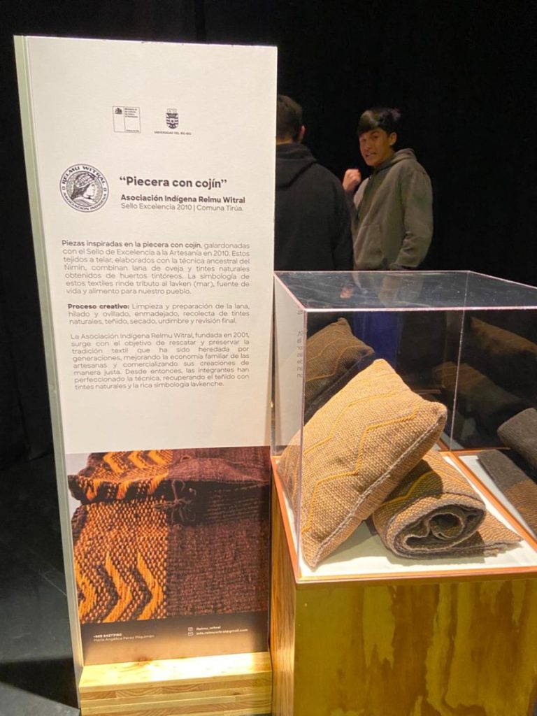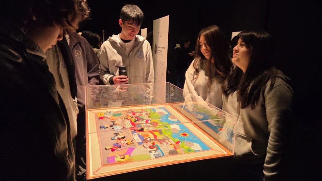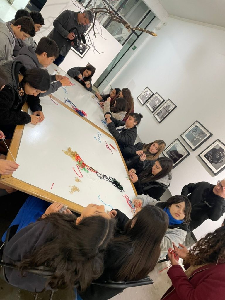 Durante la visita, los estudiantes no solo pudieron apreciar de cerca estas piezas únicas, sino que también participaron activamente en una experiencia práctica de tejido en telar, donde pusieron a prueba su creatividad y habilidades manuales. Esta instancia les permitió conectarse con el quehacer artesanal de manera directa y significativa.