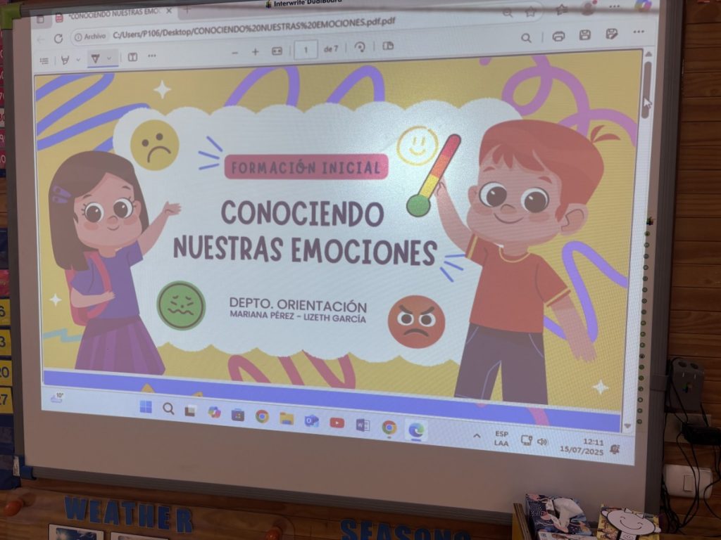 El reconocimiento de las principales emociones es la base de todo el conocimiento y es transversal a lo largo de la trayectoria académica de Niños, Niñas y adolescentes. Es por ello, que como Departamento de Orientación, por medio de su Psicóloga Educacional Mariana Pérez y Educadora Diferencial de formación inicial Lizeth García, son quienes llevan a cabo una serie de talleres orientados al reconocimiento emocional, por medio de actividades prácticas y lúdicas como es la construcción de un “Emocionómetro” el cual tiene como finalidad entregar herramientas prácticas para identificar y reconocer emociones como la alegría, tristeza, temor y rabia en el contexto educativo fomentando así un espacio seguro que valida las emociones de los estudiantes y favorece a la regulación emocional en el nivel de Formación Inicial que aglomera los cursos desde Medio Mayor a 2° Básico de nuestro Colegio.