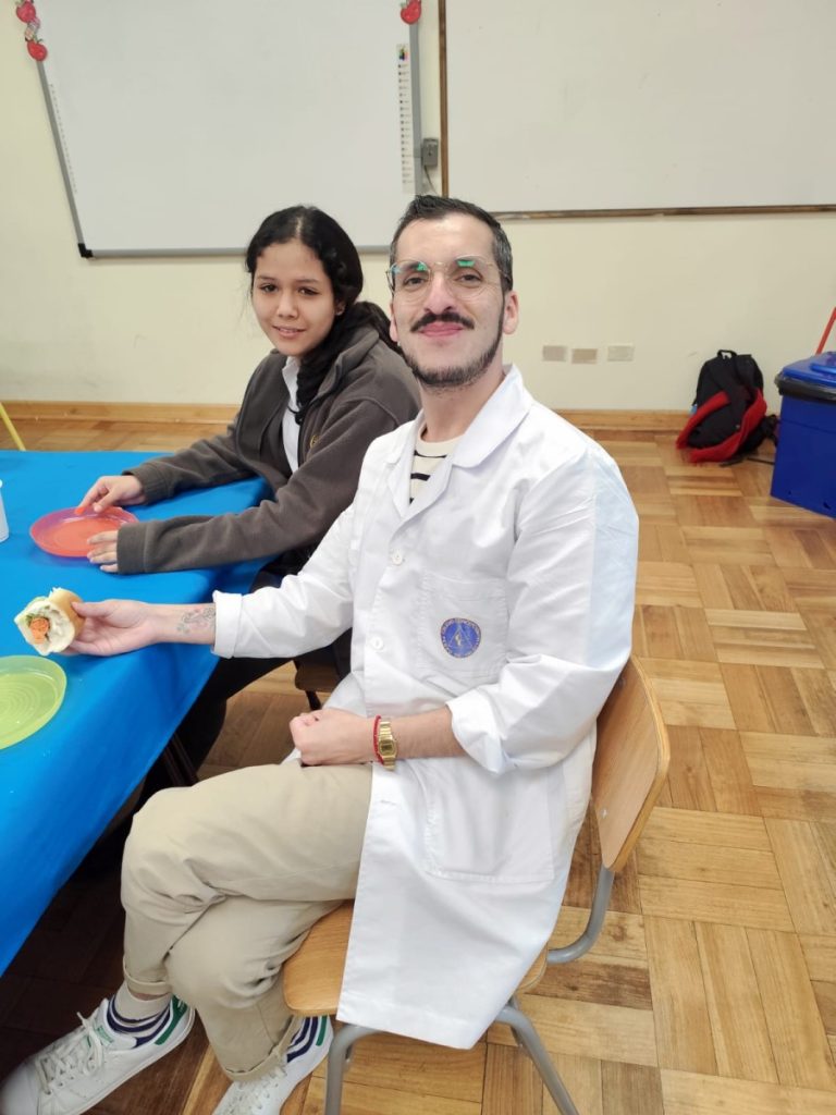 With the guidance of Mr. Marcos the students took charge of the entire preparation process. They cooked the sausages, smashed the avocados, peeled the tomatoes, and heated the bread in the school’s kitchen. It was an excellent opportunity for them to apply English in a real-life context while engaging with Chilean culinary traditions.
