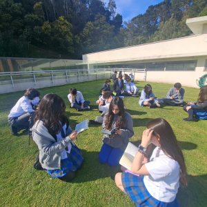 Con la llegada de los días soleados y el aumento de las temperaturas, el 1° Medio A aprovechó la oportunidad de salir al patio del colegio para realizar su sesión de lectura semanal del Plan Lector de agosto. La actividad, que se desarrolló en un ambiente relajado y natural, permitió a los estudiantes sumergirse en Crónicas marcianas de Ray Bradbury, disfrutando al mismo tiempo del aire fresco y el paisaje que rodea la institución.