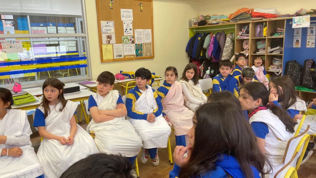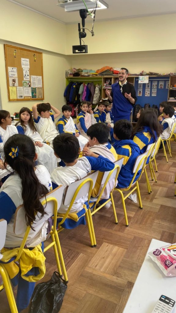 Los estudiantes de 3° básico de los cursos A, B y C continuaron con la segunda etapa del proyecto interdisciplinario de Historia e Inmersión en inglés, centrado en el fascinante mundo de la Antigua Roma. Esta iniciativa fue liderada por la profesora de Historia Ms. María Luisa Díaz y el docente del Programa de Inmersión en Inglés, Mr. Marcos Riveros, quienes propusieron una experiencia dinámica que integró el aprendizaje histórico con la práctica comunicativa del idioma inglés.