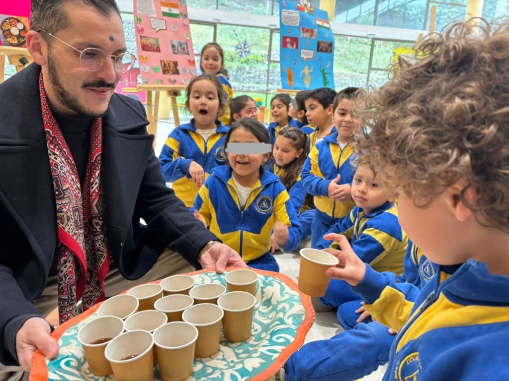 Guided by Mr. Marcos, students reflected on different aspects of Indian life, and as part of the experience, they painted a bindi on their foreheads, learning its cultural meaning as a symbol of protection and self-reflection. Each colour had a special message: green for good luck, blue for wisdom, yellow for prosperity, and red as a traditional family sign. To make the exchange even more immersive, students also had the chance to taste Indian tea, connecting them directly with one of the country’s most emblematic traditions.