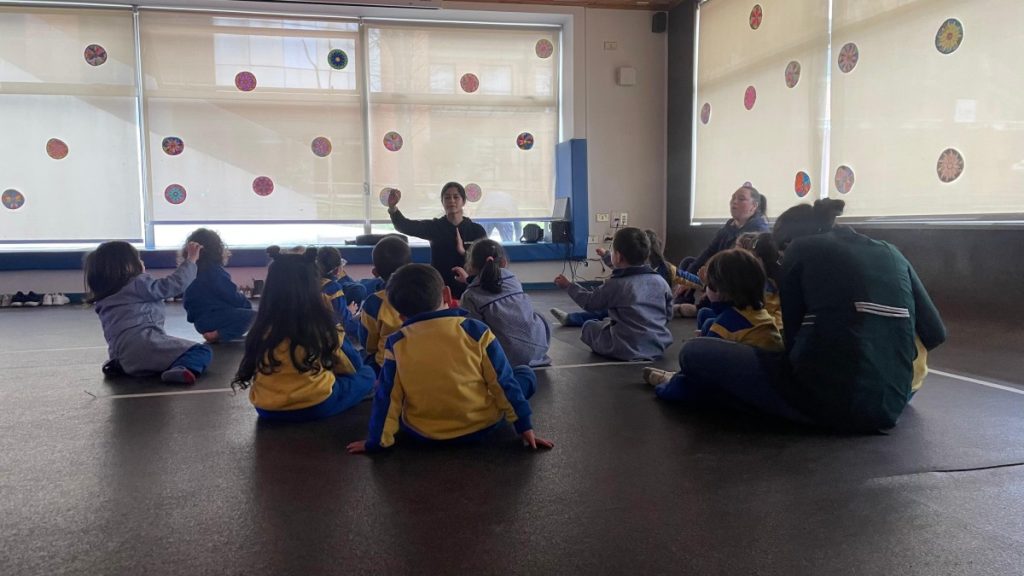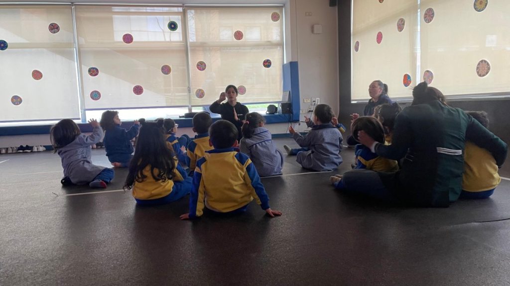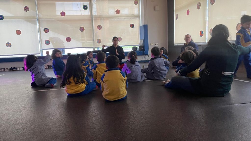 One of the highlights of the exchange was a children’s yoga session, held in the psychomotricity room and guided by the yoga instructor Noelia Ordenes Castillo. Through simple movements, breathing, and relaxation exercises, the children enjoyed a calm, playful introduction to yoga, a practice strongly rooted in India’s cultural heritage.