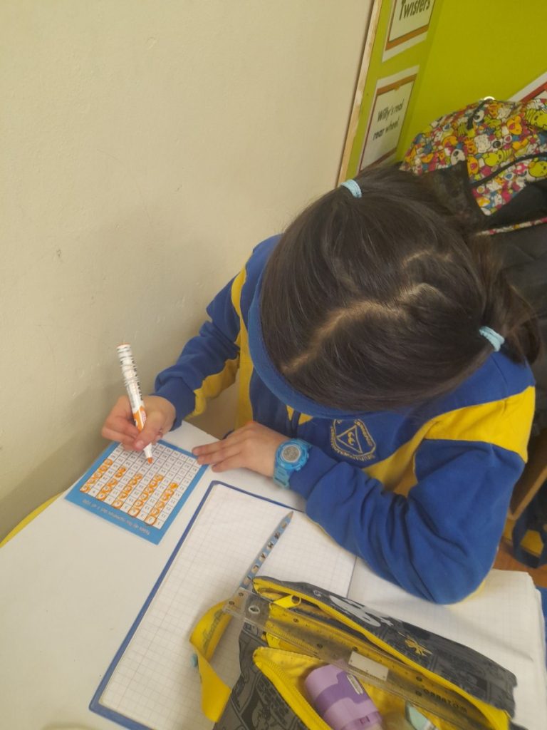 Como parte de las diversas estrategias para comprender los patrones numéricos, los estudiantes del nivel 3° Básico, han reforzado lo aprendido utilizando en clase de Matemática, la» tabla del 100″.
