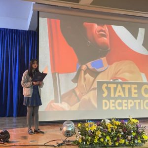 The session was led by students from the Advanced English Literature class, who guided the audience through a series of thought-provoking presentations. Antonia González explored the representation of war in literature and the emotional power of storytelling, while Rocío Oyarzúa analysed the use of propaganda and its impact on society during times of conflict. Mariana González focused on the fate of stolen masterpieces and the cultural losses caused by Nazi looting, Benjamin Sáez examined the liberation of Auschwitz and the closing chapters of the war, and Mia Kreca explored art portraying women in war times; together these talks created a powerful narrative that connected historical facts with ethical questions, artistic expression, and human stories.
