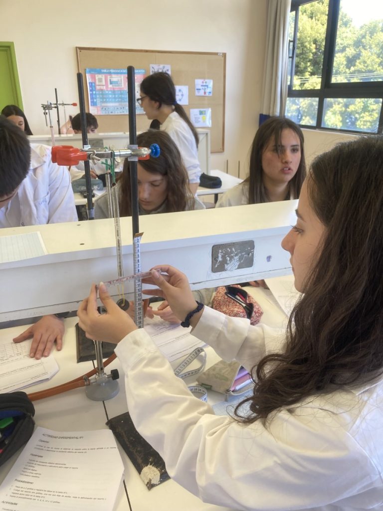 Durante el mes de noviembre, los estudiantes de 2° Medio A y 2° Medio B del Colegio participaron en una actividad experimental en la asignatura de Física, orientada a la demostración experimental de la Ley de Hooke. A través del trabajo con resortes y masas, los y las estudiantes pudieron comprobar la relación entre la fuerza aplicada y la deformación elástica, vinculando la experiencia práctica con los fundamentos teóricos estudiados en clases.