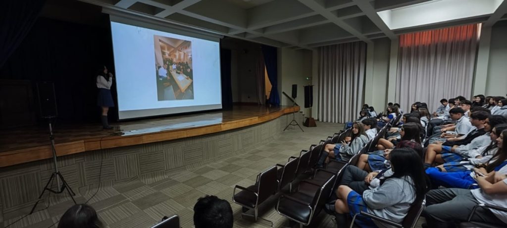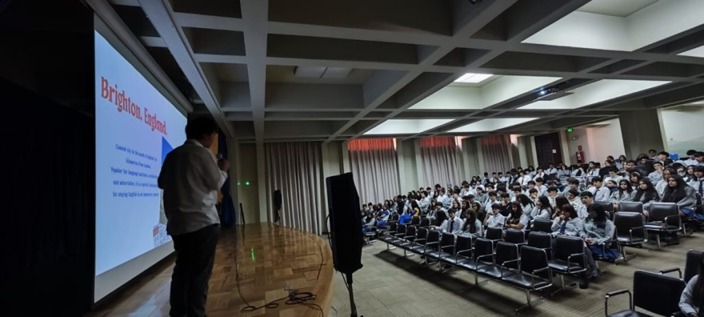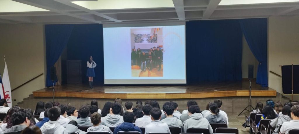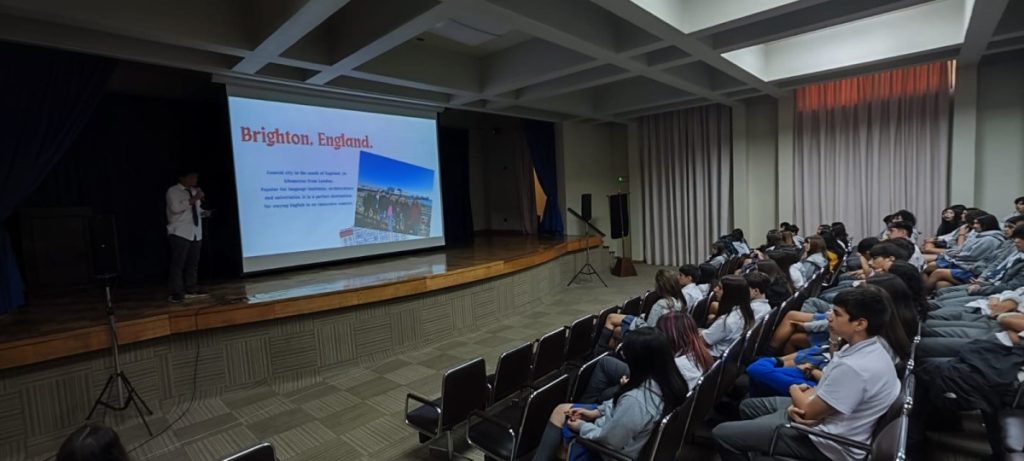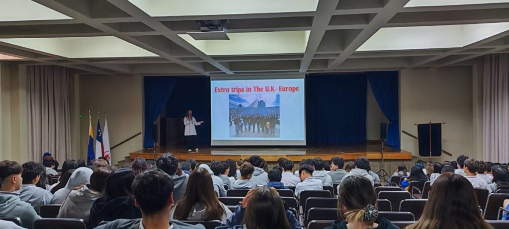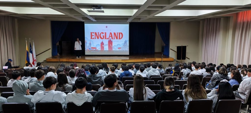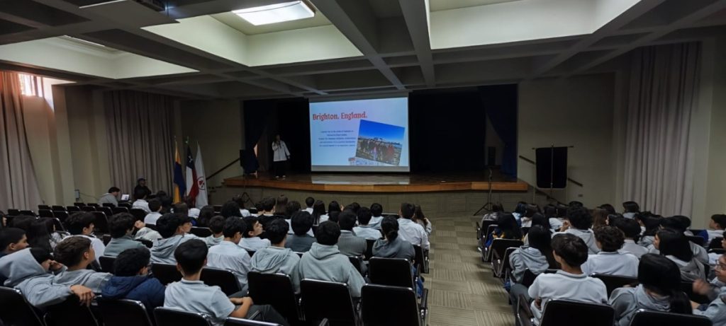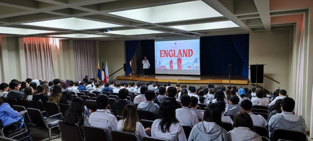 A special talk was recently held at our school to share the experiences of the January 2026 trip to England, which brought together secondary students from different grade levels. The session was hosted by Miss Camila Moisan and featured student speakers Rocío Oyarzúa and Tomás Garcés.