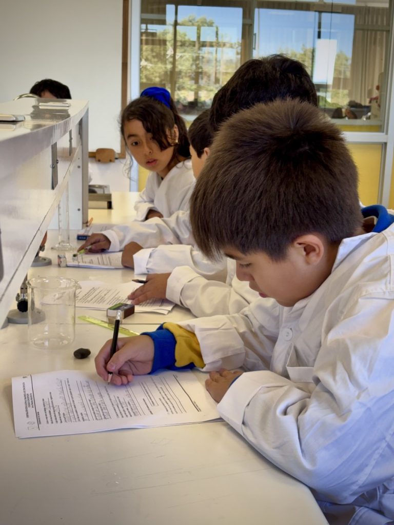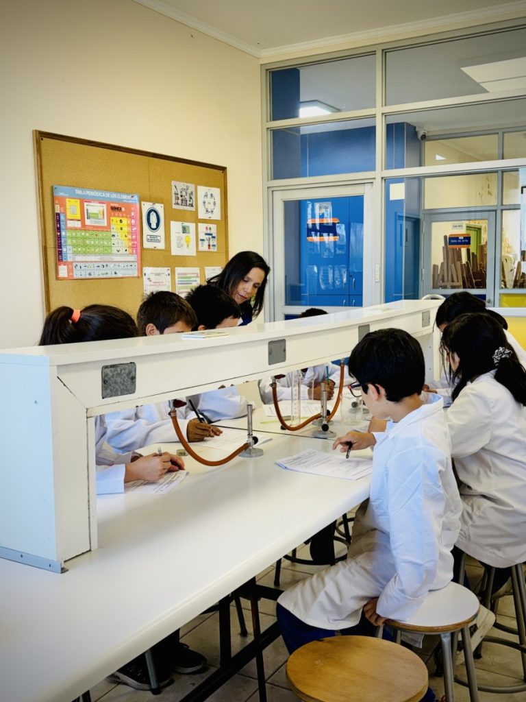 Los estudiantes de cuartos básicos, asistieron durante las primeras semanas de abril, al Laboratorio de Ciencias con la finalidad de poner en práctica lo aprendido del concepto de materia y de cómo medir la masa y el volumen de un cuerpo. Las actividades fueron dirigidas por la Profesora Encargada del Laboratorio, Sra. Pamela Tobar.