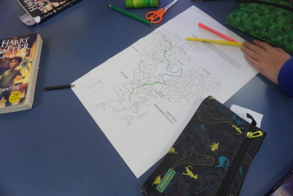 The session began with a geographical introduction to the British Isles, providing students with the context needed to understand the setting of the story. From there, the activity expanded into a broader exploration of the cultural and geographical elements that shape the narrative.