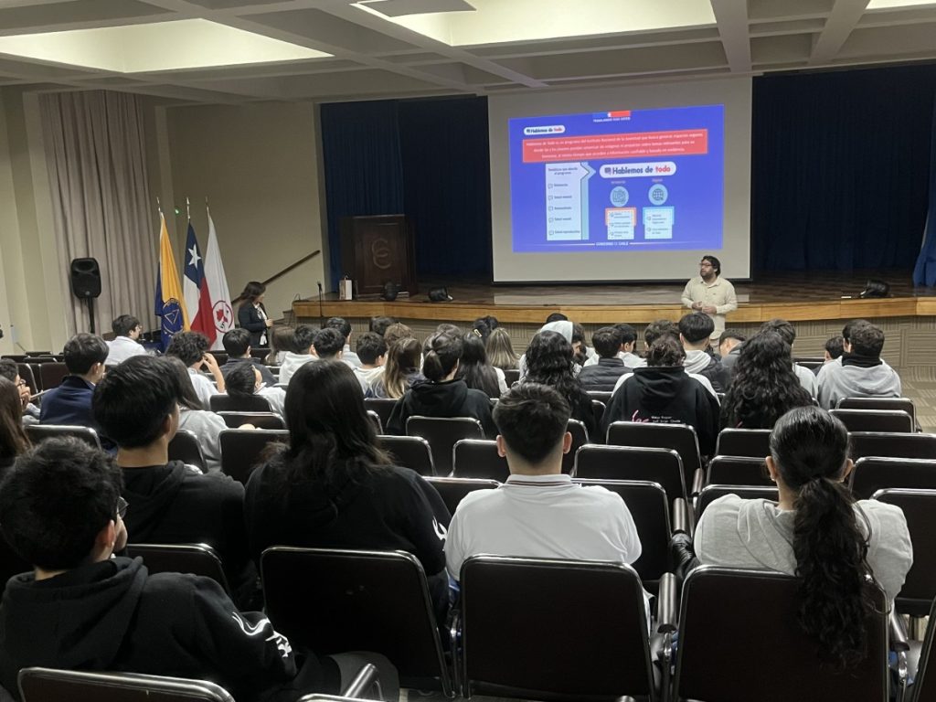 En el marco de las iniciativas de vinculación con el medio y formación ciudadana, el Colegio Concepción Pedro de Valdivia recibió la visita de la directora regional del Instituto Nacional de la Juventud (INJUV), junto a su equipo de trabajo, quienes presentaron a la comunidad educativa los principales programas y líneas de acción de la institución.