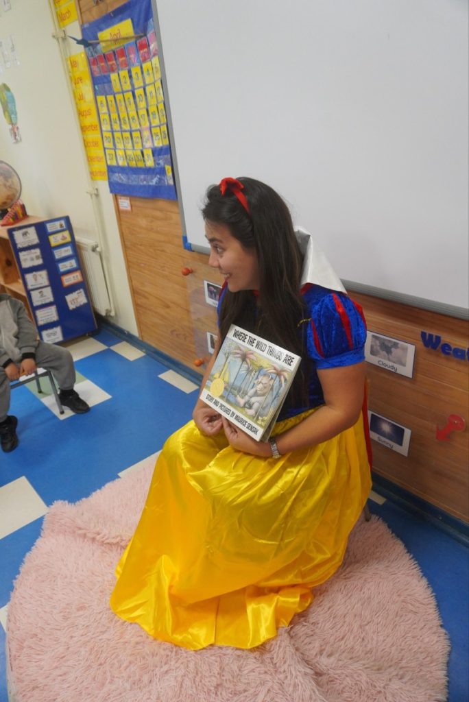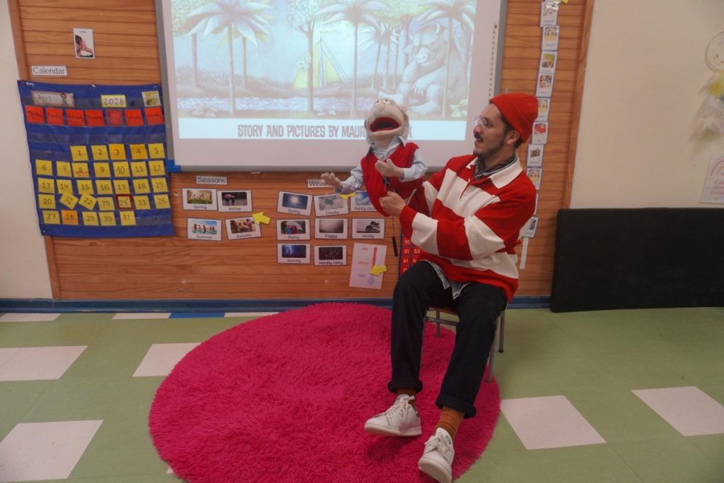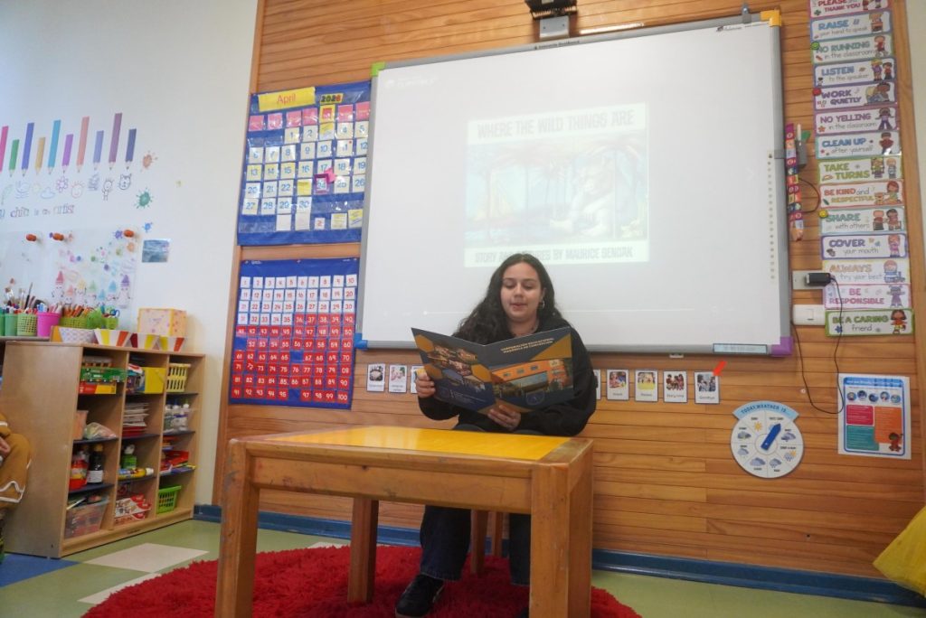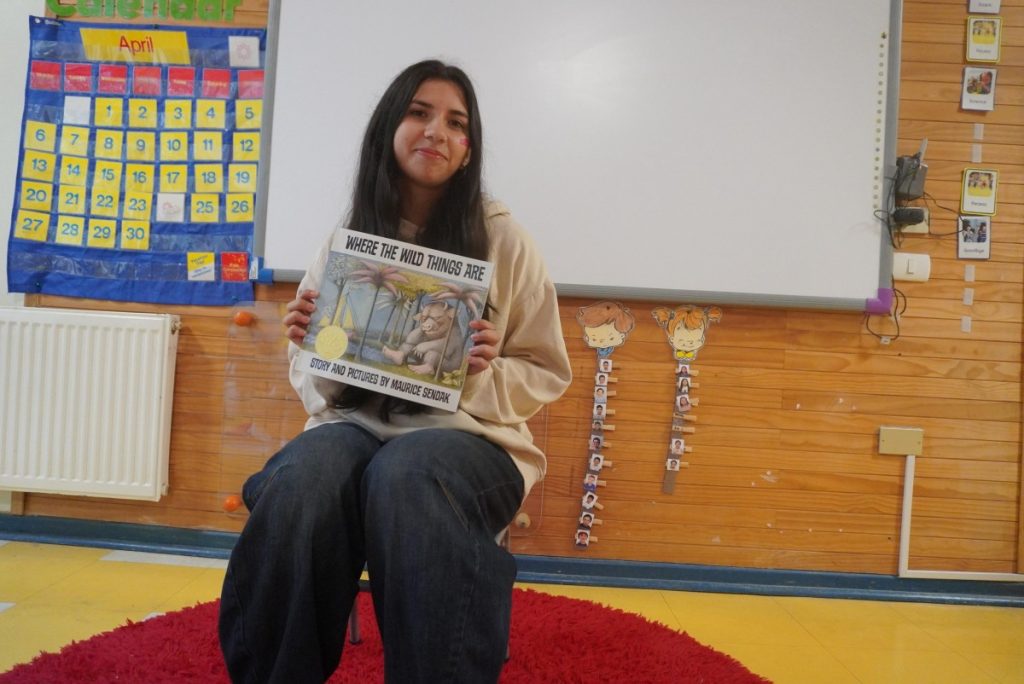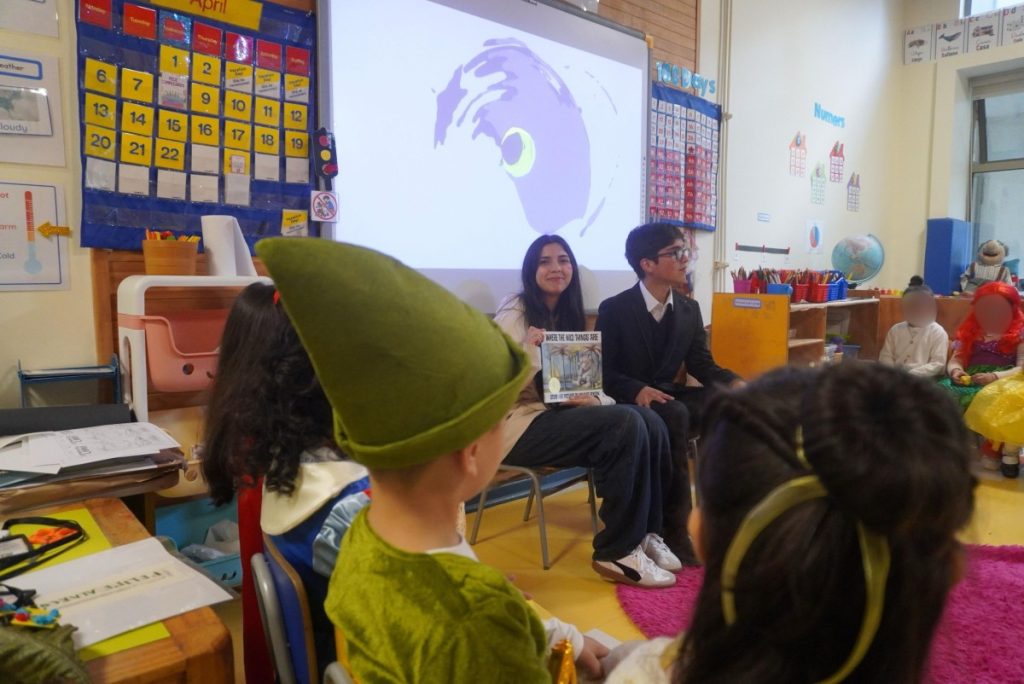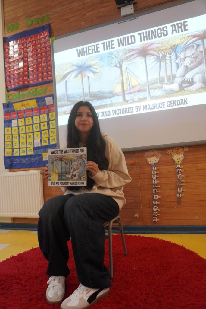 The story chosen for this occasion was Where the Wild Things Are by Maurice Sendak, a classic tale that follows Max on an imaginative journey to a world of wild creatures. Through this story, students were invited to explore themes such as imagination, emotions, and self-expression, connecting with the character’s feelings and experiences.