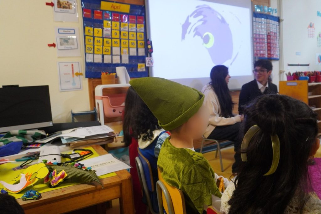 This session was guided by Benjamín Sáez, Antonia González, Mariana González, and Rocío Oyarzúa, students from the Senior Area, who led the storytelling with enthusiasm and care, creating a warm and engaging atmosphere for the younger students.